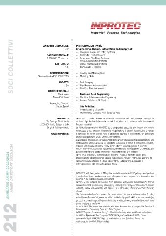 ANNUARIO ANIMP 2023/2024 ANIMP DIRECTORY 2023/2024 Aprile 2022 anche una sede in Libia a Tripoli “INPROTEC Libya” che ci consente di