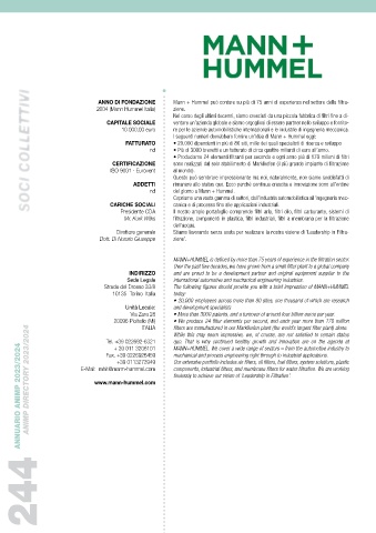 ANNUARIO ANIMP 2023/2024 ANIMP DIRECTORY 2023/2024 E-Mail: mhit@mann-hummel.com Our extensive portfolio includes air filters, oil filters, fuel filters, system solutions, plastic