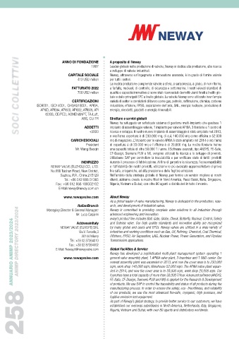 ANNUARIO ANIMP 2023/2024 ANIMP DIRECTORY 2023/2024 E-Mail: Neway.it@newayvalve.com industries and working conditions such as Gas, Oil, Refining, Chemical, Coal Chemical,