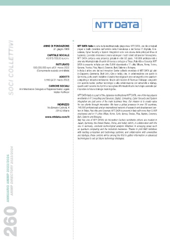 (Comprese le società controllate) In Italia è attivo uno dei sei Innovation Center a livello mondiale di NTT DATA (gli altri Nuovo Pignone International S.r.l. renze, Massa, Bari, Vibo Valentia, Talamona (SO), Casavatore (NA) e Cepagatti (PE) e