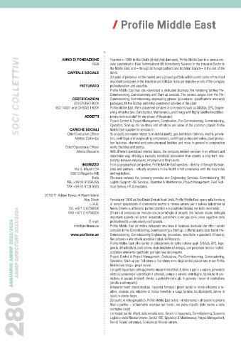 ANNUARIO ANIMP 2023/2024 ANIMP DIRECTORY 2023/2024 www.profileme.ae completi di Pre-Commissioning, Commissioning e Start-up. L’offerta spazia dalle fasi di Pre-
