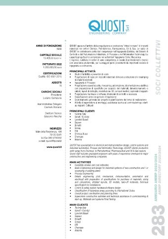 ANNO DI FONDAZIONE QUOSIT opera nell’ambito della progettazione e costruzione “chiavi in mano” di impianti