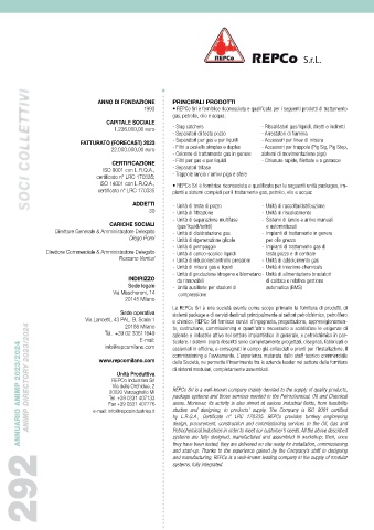 ANNUARIO ANIMP 2023/2024 ANIMP DIRECTORY 2023/2024 e-mail: info@repcoindustries.it della Società, ne permette l’inserimento tra le aziende leader nel settore della fornitura