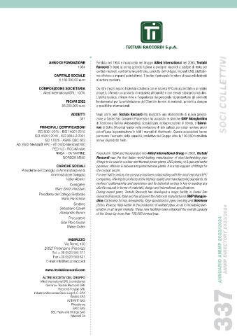 Presidente del Collegio Sindacale During recent years, Tectubi Raccordi has developed a major facility in Castel San