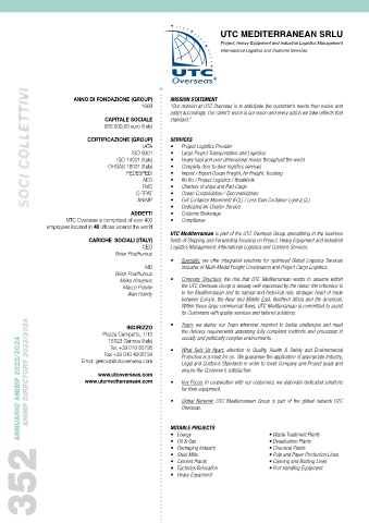 ANNUARIO ANIMP 2023/2024 ANIMP DIRECTORY 2023/2024 Email: genova@utcoverseas.com • Protection is a must for us. We guarantee the application of appropriate Industry,