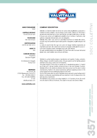 196 milioni di euro Valvitalia offre a tutti i suoi clienti un consolidato know how nel mondo delle valvole, SOCI COLLETTIVI